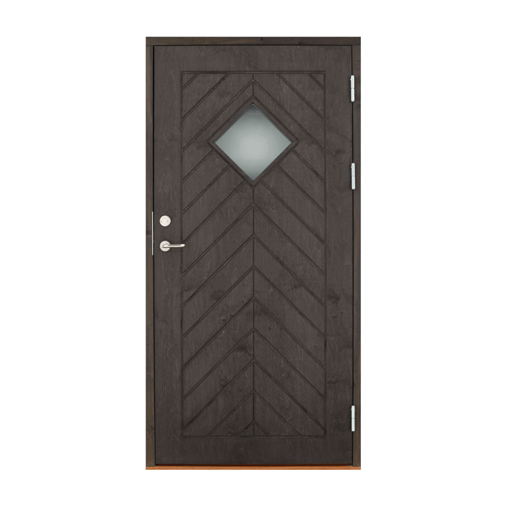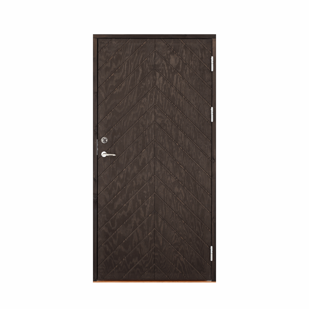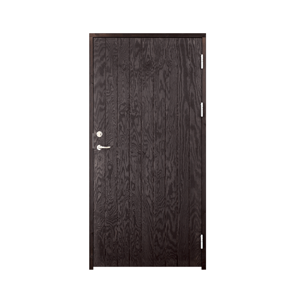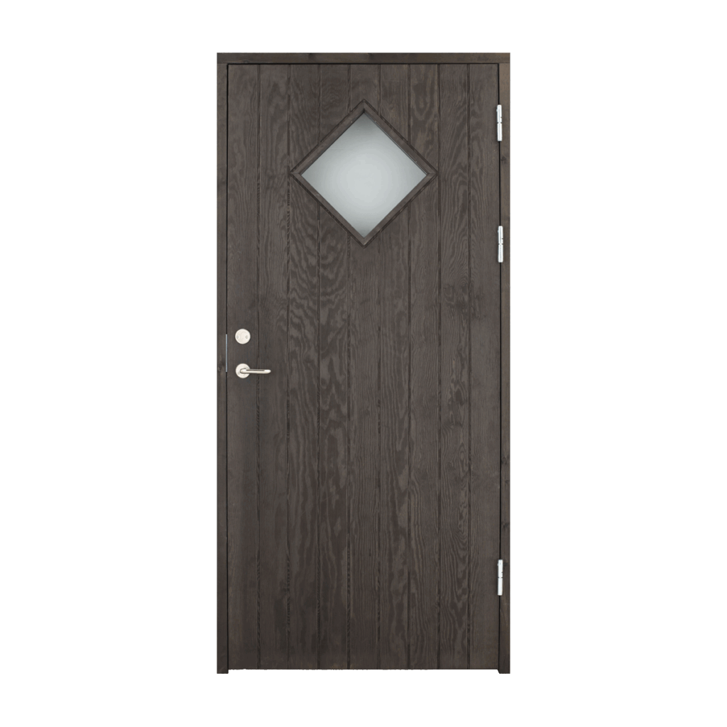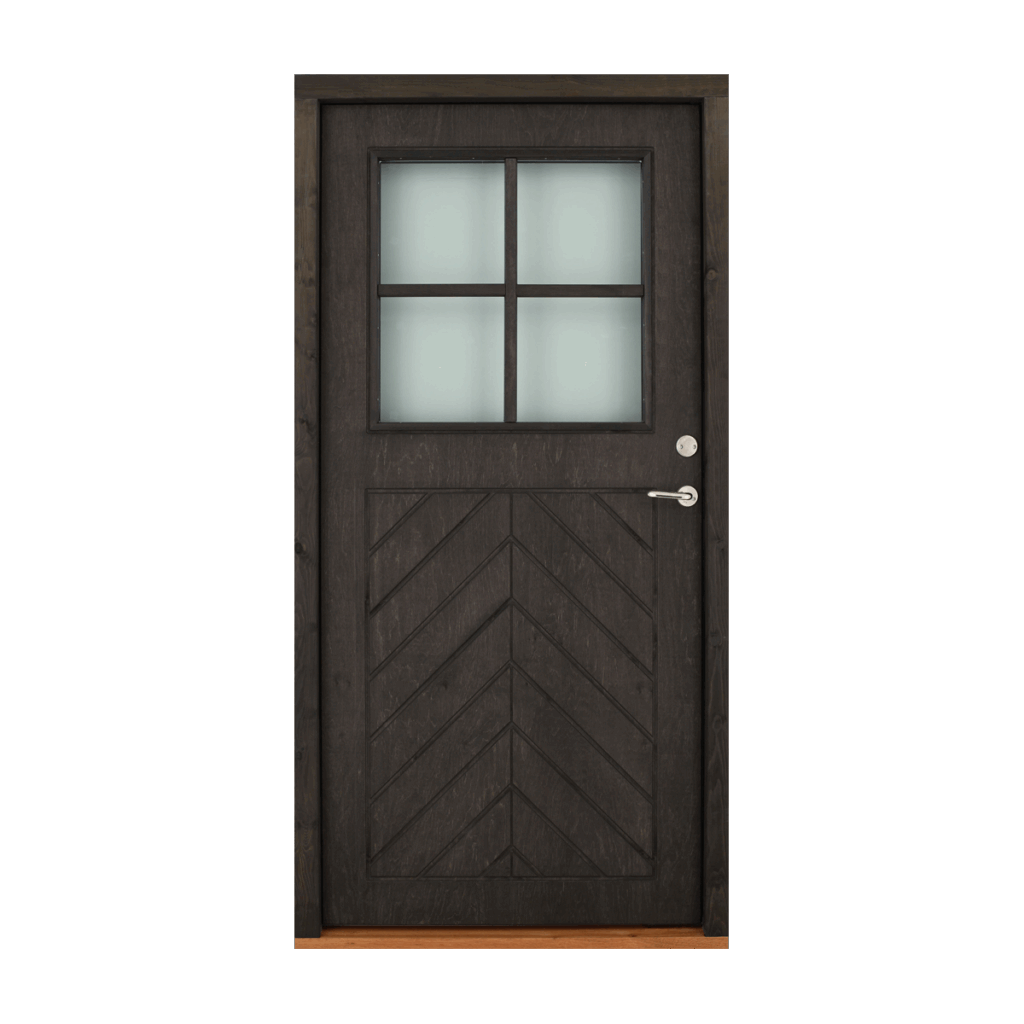 Det här är det självklara valet för dig som vill ha din ytterdörr komplett och helt klar att montera. Dörren levereras grundbehandlad med brunsvart lasyr samt dörrbladet oljat in- och utvändigt med färglös träolja. Allt du behöver göra är att skruva fast handtaget. Självklart har du även här möjlighet att påverka utseende och mått på din dörr så att den passar dina behov och din byggnad.