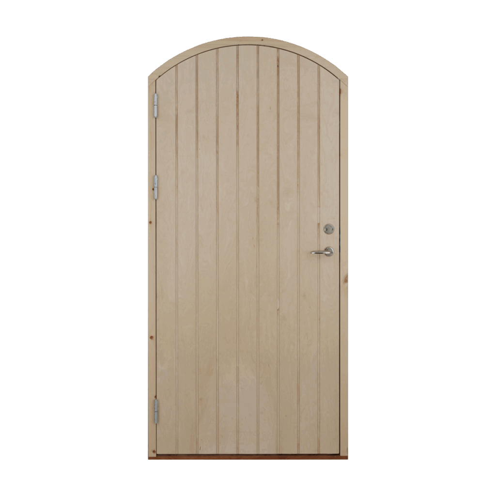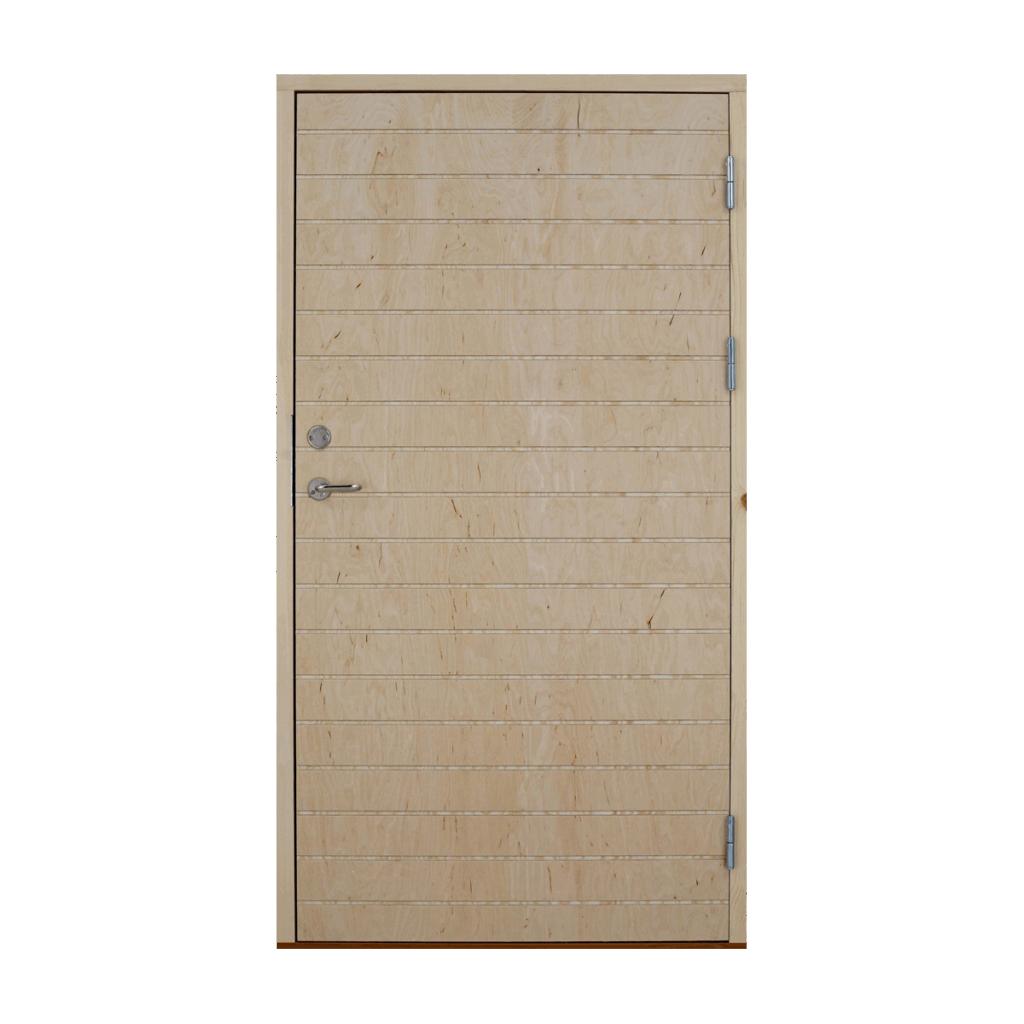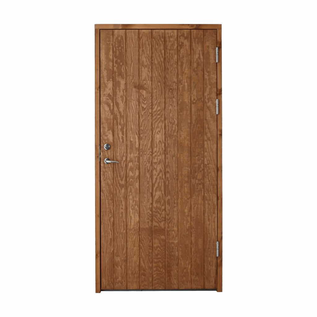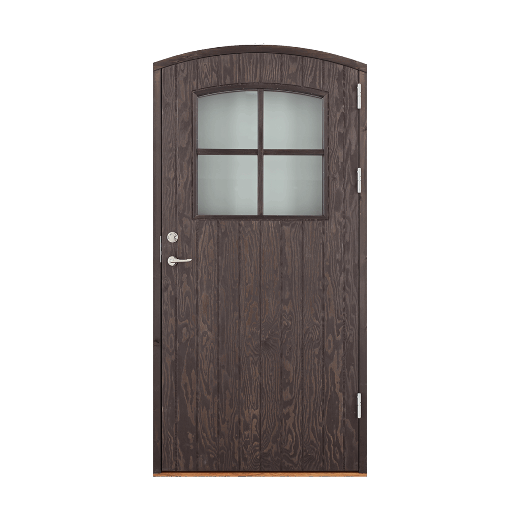 Grundmodellen av vår ytterdörr har en neutral och tidlös stil med stående dekorspårning. Kanske är det precis den dörr du är ute efter. Annars kan du genom diverse val påverka dörrens mått, utseende och karaktär. Vill du hellre ha en snedställd eller liggande spårning? Glas i dörren för ljusinsläpp, en valvformad ovankant eller en garageport? Oavsett vilken stil eller vilka mått du väljer, får du en pålitlig kvalitetsdörr byggd för svenskt klimat.